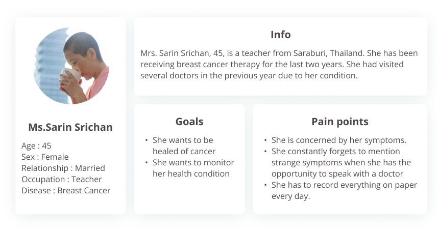 I conducted the usability testing with three cancer patients who currently taking medical treatment and age between 40 to 60 years old . Based on users and team feedbacks, I continually iterate the design over the span of 2 weeks and this is an improvement :