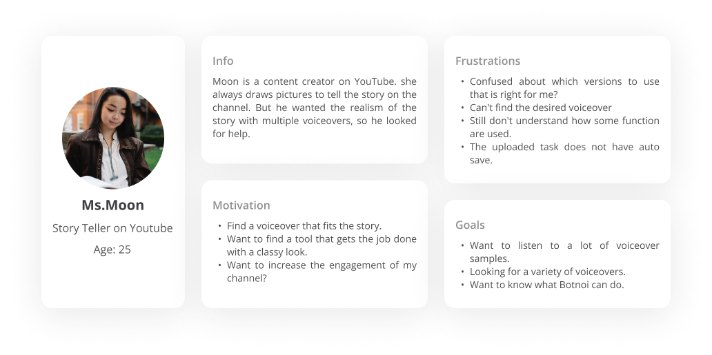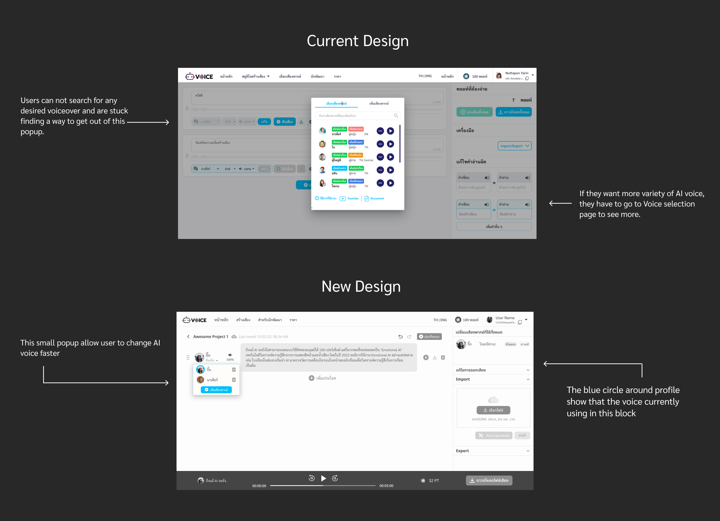 The existing design of Botnoi Voice frequently causes confusion and frustration among users. In addition to the lack of consistency and standardization in design components, there are significant issues such as confusing user flow and inadequate error prevention which leads to poor user experiences.